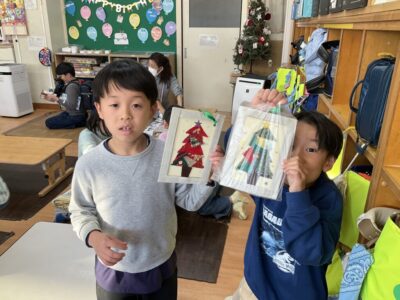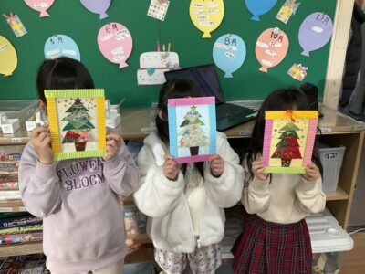 色づかいにひとりひとりの個性が表れていてとっても良い作品がそろいました。ぜひともお家に飾って下さいね。サンタさんも大喜びだと思います