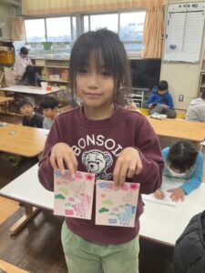みんな、好きな色で上手に塗って素敵な年賀状が出来ました。