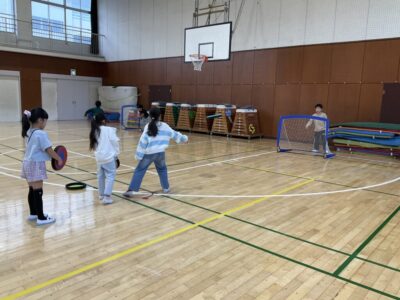 今回のスポーツ教室はドッヂビーを使って身体を動かします。