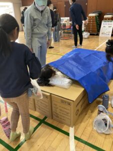 防災フェスタ 2025年11月15日 毎年、この日はキッズのみんなは防災フェスタに参加しています。 なかなかできない体験にみんなやる気満々です! 避難した時のベッドの寝心地も体験しました。 スタンプラリー4カ所廻って、お菓子をもらって防災フェスタ体験終了しました〜。 一覧へもどる