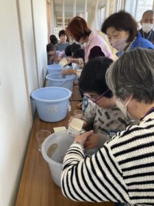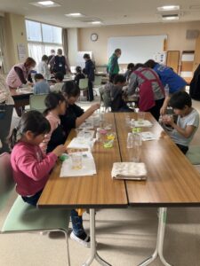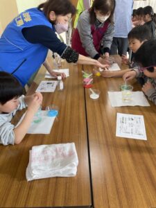 先生からやり方を教わって、好きな色でなみだ(つぶつぶ)を作っていきます。