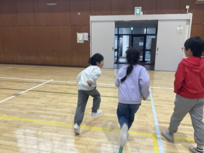 百人一首の札でペアになったらキッズルームに戻って、ひなあられと交換です。みんな下の句を合わせようと探しますが、おにごっこもプラスされているので、逃げながらペア探しです。