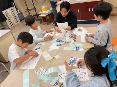 最後はみんなが作ったおさかなで大きなおさかなを作りました(スイミーみたい)