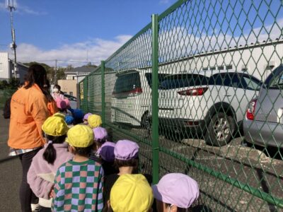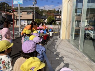 保育者と一緒に保育園に避難しながら、道中の危険な場所をみんなで確認しました。