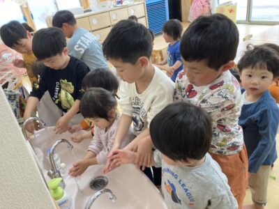 「袖まくってね」「手擦るんだよ」と手洗いを一緒にやったり席まで手を繋いで連れて行ったりしてくれました(*^▽^*)
