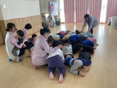 乳児さんもお兄さんお姉さんの真似をして上手にダンゴムシポーズを取ることが出来ました!