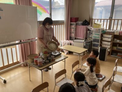 昼食前には非常食についてのお話もしてもらいました!