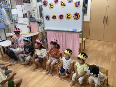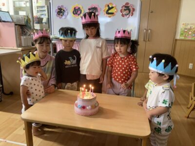 「たん、たん、たん、たんじょうびー」保育室から元気な歌声が聞こえます(*^^*)