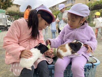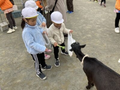 モルモットやウサギをお膝の上に乗せていたり、ヤギに手渡ししたりして持ってきたお野菜をあげていた子ども達!