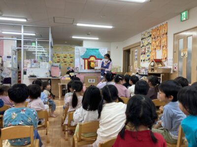 七五三集会が行われました。 飴のクイズです