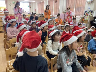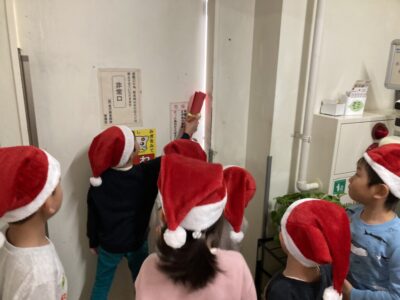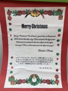 そしてみんなであわてんぼうのサンタクロースを歌った後、サンタクロースの声が聞こえ、年長さんと一緒に玄関へ向かうとそこにはお手紙が置いてありました✨中を開けてみるとサンタクロースからのお手紙(≧▽≦)
