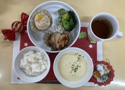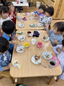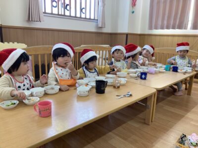 昼食は調理さんに来ていただいて、幼児のバイキング形式でいただきました!