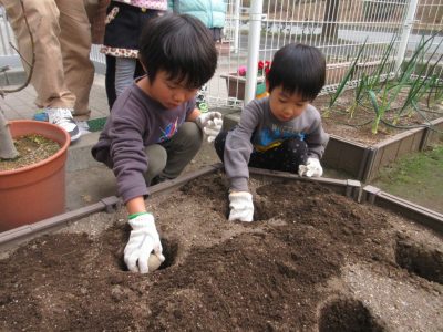 こんにちは!! 本日は、年中さん(緑帽子)主での初植えです!