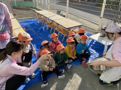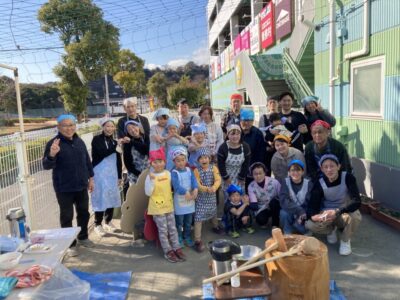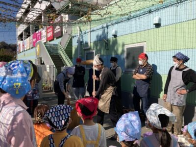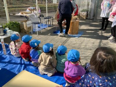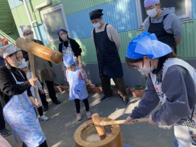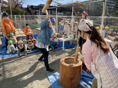 晴天の中、園庭にてお餅つきを行いました☆彡