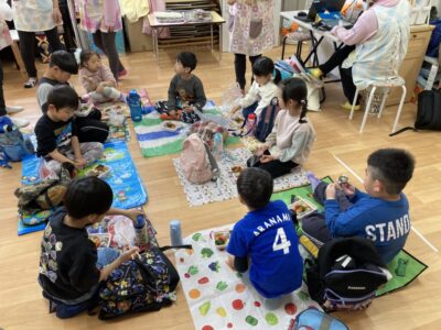 小柴公園までの予定でしたが、天気が不安定だったため予定を変更して、ビアレ横浜スマイル保育園で2園合同でお昼ご飯を食べて、近くの公園にて交流会をしました✨2