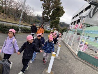 昼食後は、近くのイドモ公園まで行きました⭐一緒に凧あげを行いました。